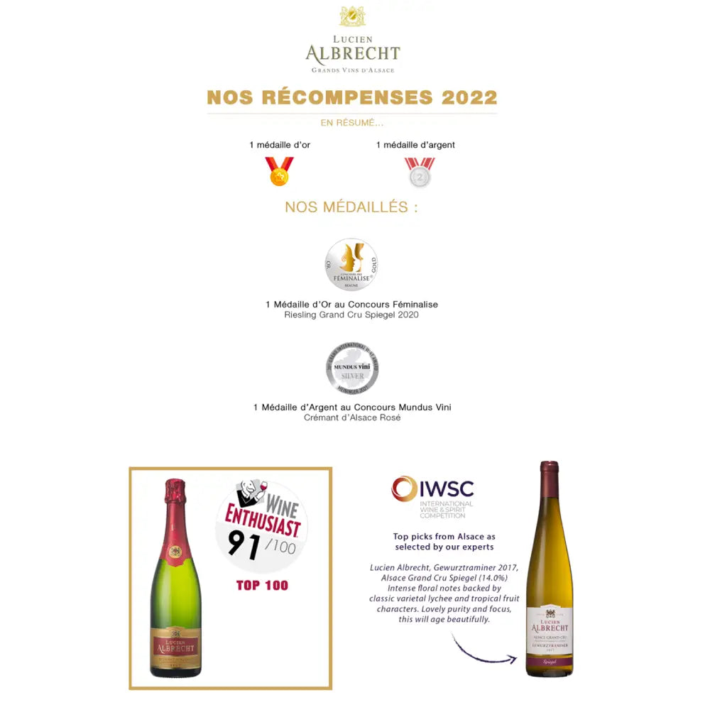 Loyal to its traditions, Maison Lucien Albrecht is still increasing its influence around the world thanks to new vintages and is cited in all the wine guides, journals and magazines.