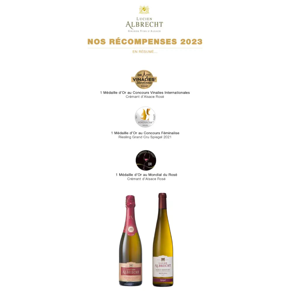 The Cremant grapes are grown on the lower end of the slopes surrounding Orschwihr, procuring from them the richness, fullness and strength necessary for the vinification of the sparkling wines whose fame Lucien Albrecht has already established.